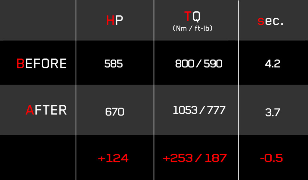Please refer to the picture below to view the power increase figures for your Mercedes R231 SL63 AMG V8 BiTurbo